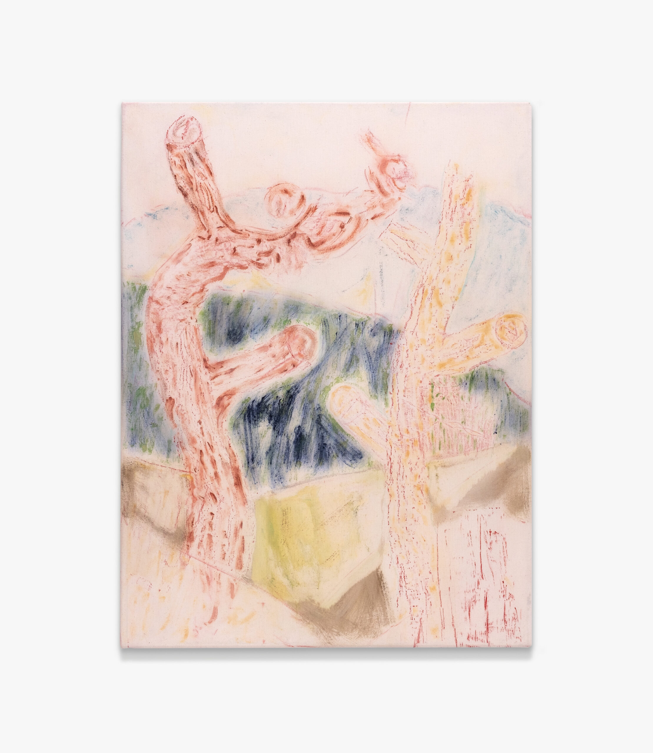 Emil Salto, altid den samme, aldrig den samme, 2026, Acrylic & beeswax crayon on cotton canvas over canvas, 80h x 60w cm